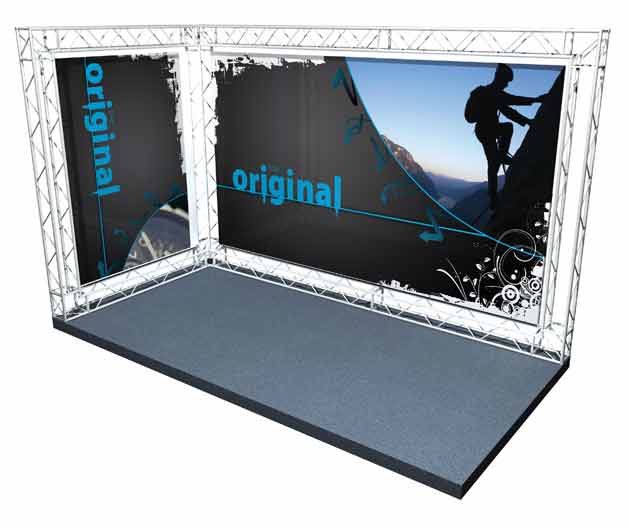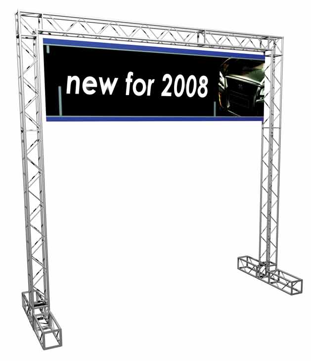 These exhibition gantry systems can be used with fabric graphic drops and display lighting. Exhibition gantry is light weight and quick to assemble and suitable for hanging plasma screens, projectors, products and much more.